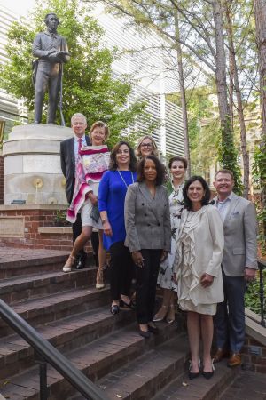 The visit began at the 3rd Annual Bench & Bar Boo-Ray Tournament held at Old Parkland. Designed to honor the legacy of the historic Parkland Hospital, this prestigious office campus is rich with fine art, rare artifacts and the spirit of entrepreneurship. It stands as a tribute to history, a reflection of American ideals and a celebration of what’s possible when a community unites. Jean-Guillaume and Stéphanie de Tocqueville shared a meaningful moment honoring their family legacy with a visit to the striking statue of Alexis de Tocqueville, prominently featured on the campus. The statue is located near the Tocqueville Steps, where quotes from Alexis de Tocqueville are displayed.
